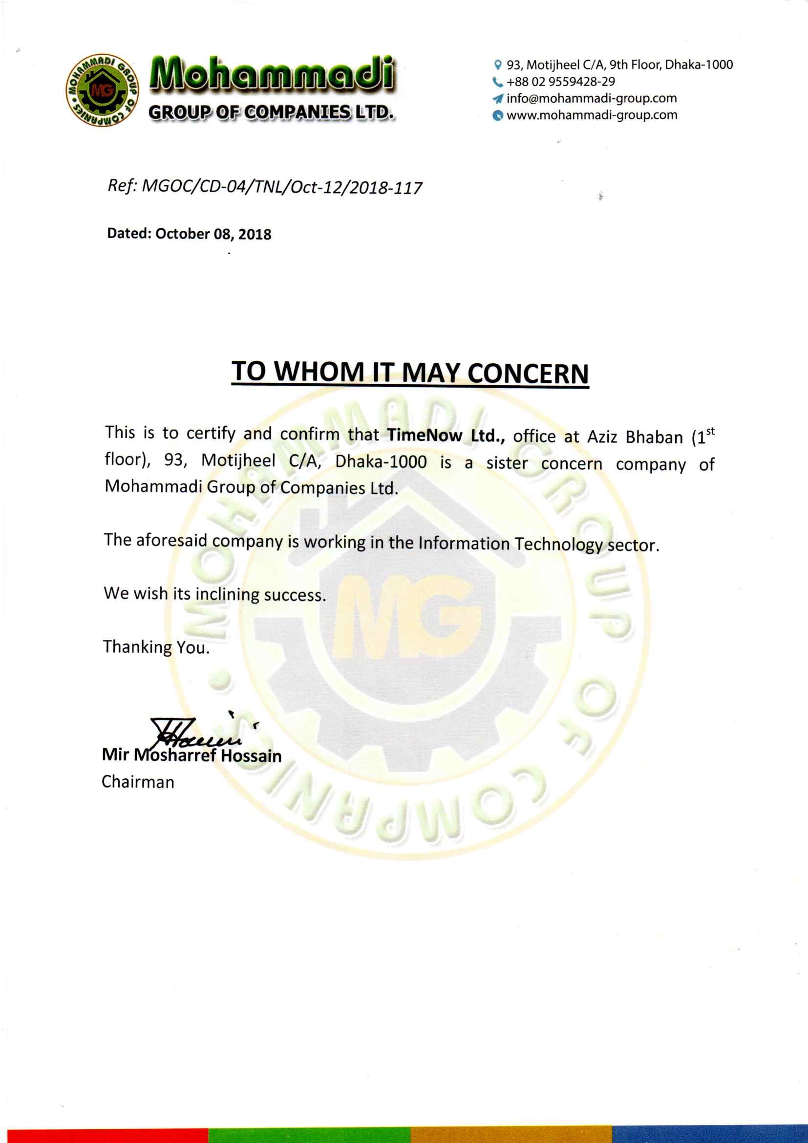 TimeNow use the brand name MDI-Canada Inc. for the purposes of carrying out technical consultancy and promoting international trade on High-tech products & services.